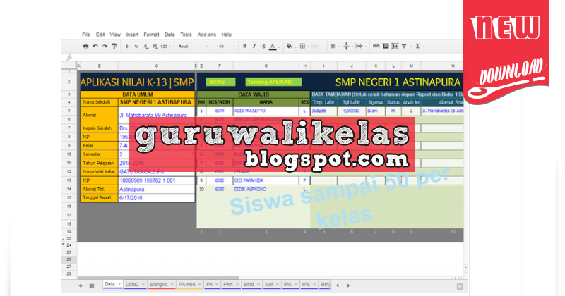 Aplikasi Olah Nilai Versi Permendikbud Nomor 53 Tahun 2015 Format Microsoft Excel New Update